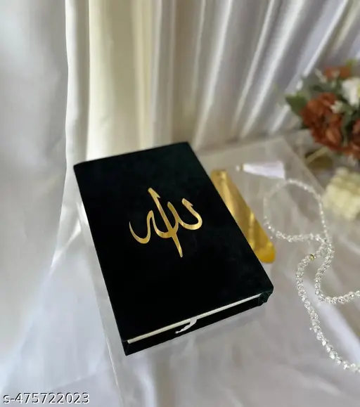 Make every occasion meaningful with this beautifully curated Qur’an Hamper, featuring a customized Black Velvet Qur’an Shareef, a Janmaaz (prayer mat), Tasbih (prayer beads), and a digital Tasbeeh counter. Thoughtfully designed with elegance and spirituality in mind, this luxurious gift set is perfect for weddings, Ramadan, Eid, Nikkah, or as a heartfelt personal gift.